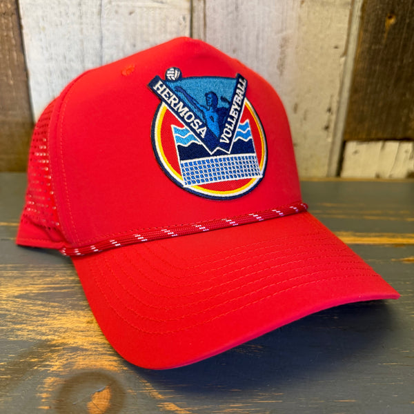 LET'S GET SERVED :: HERMOSA BEACH VOLLEYBALL High Crown 5 Panel Perforated Mesh Back Hat - Red