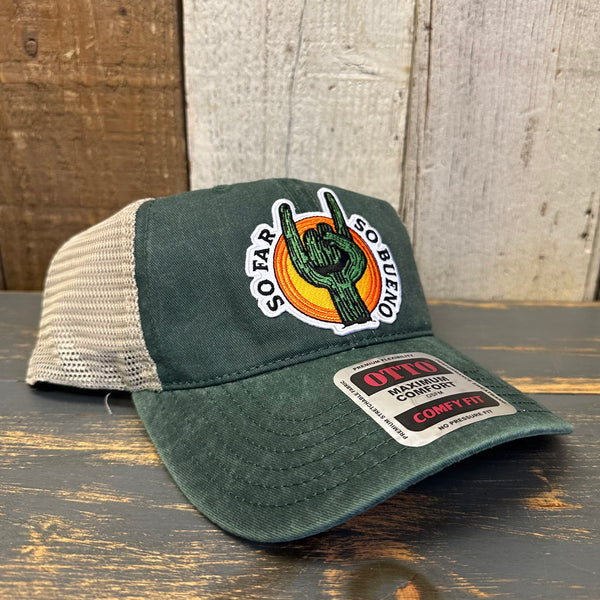 SO FAR :: SO BUENO 6 Panel Low Profile Trucker Hat - Dark Green/Khaki