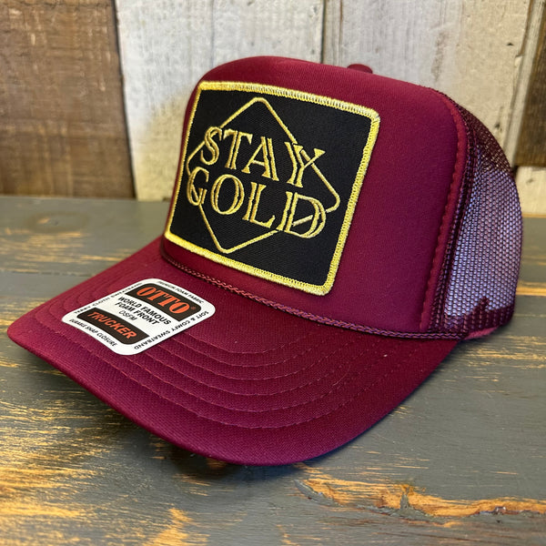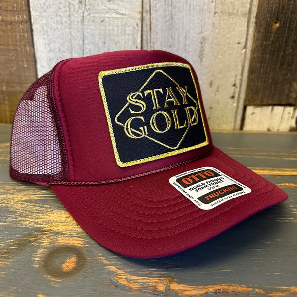 STAY GOLD High Crown Trucker Hat - Burgundy Maroon