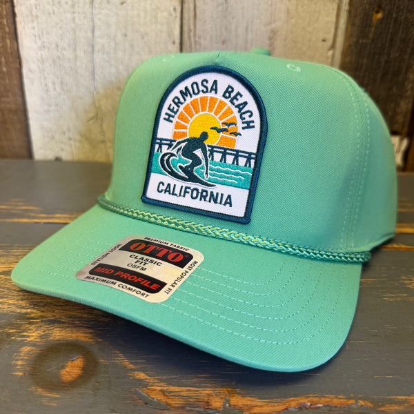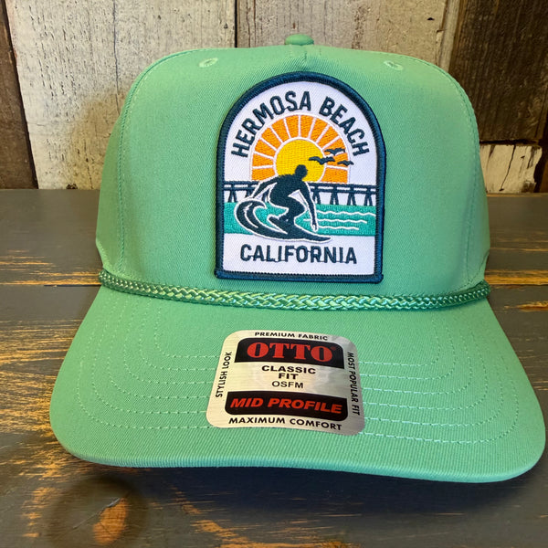 Hermosa Beach 1 to 3 FEET HIGH & RISING 5 Panel Mid Profile Baseball Cap - Cactus Green