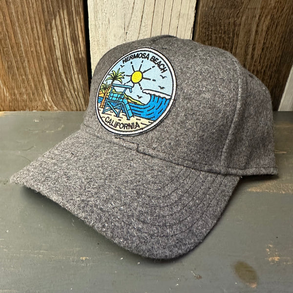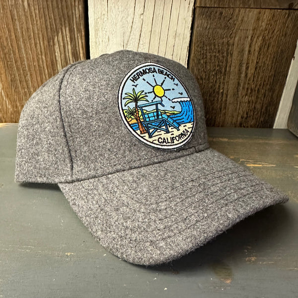 Hermosa Beach SHOREFRONT 5 Panel Low Profile Melton Wool Blend Baseball Cap with Velcro Closure - Heather Grey
