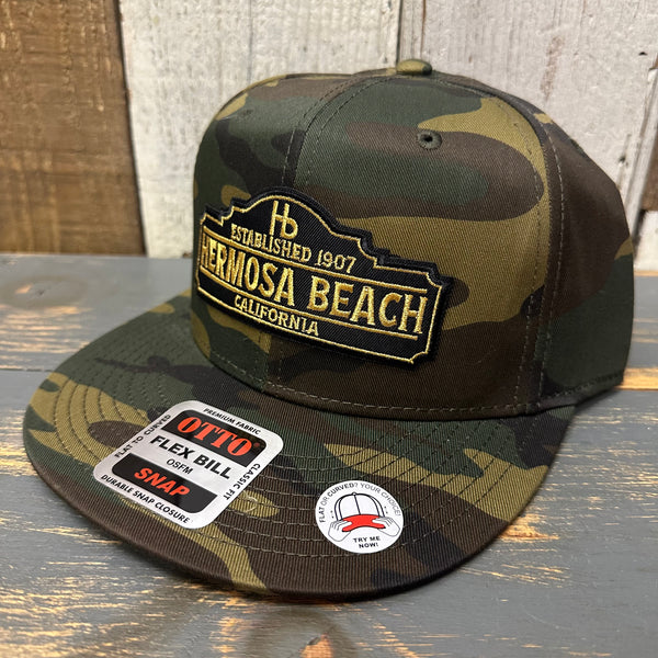 Hermosa Beach ARE YOU ESTABLISHED? 6 Panel FLEX BILL Snapback Hat - Camo