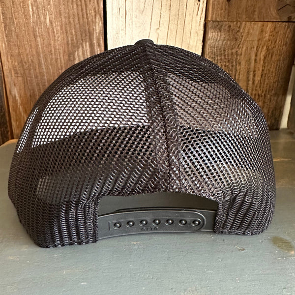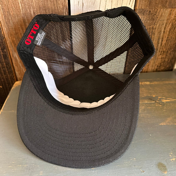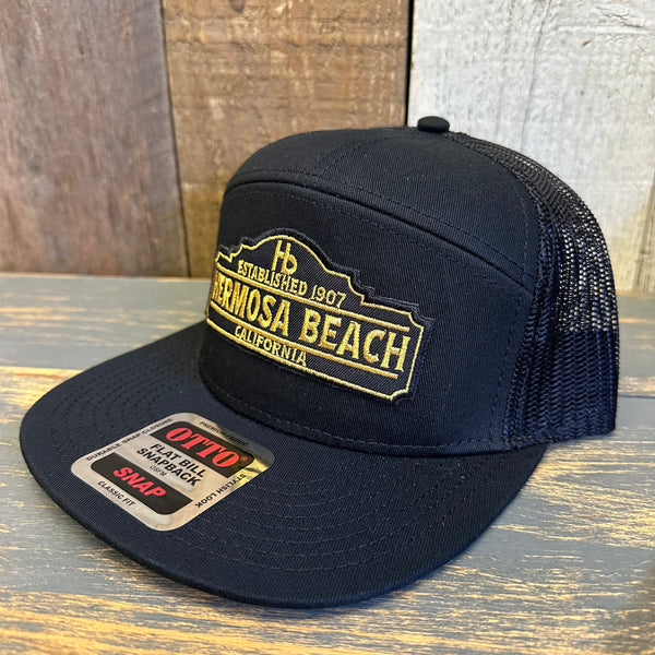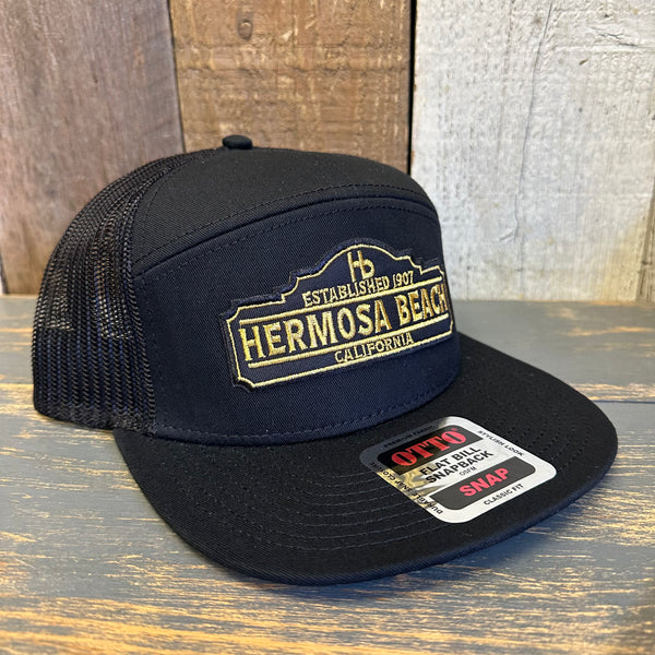 Hermosa Beach ARE YOU ESTABLISHED? 7 Panel Mid Profile Trucker Snapback Hat - Black