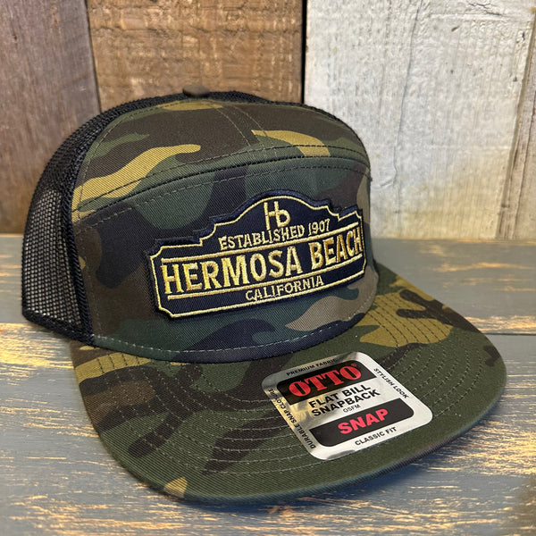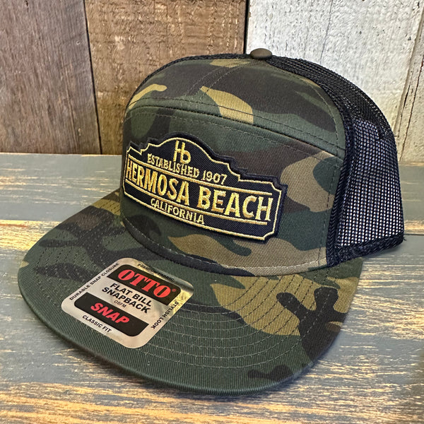 Hermosa Beach ARE YOU ESTABLISHED? 7 Panel Mid Profile Trucker Snapback Hat - Camo/Black