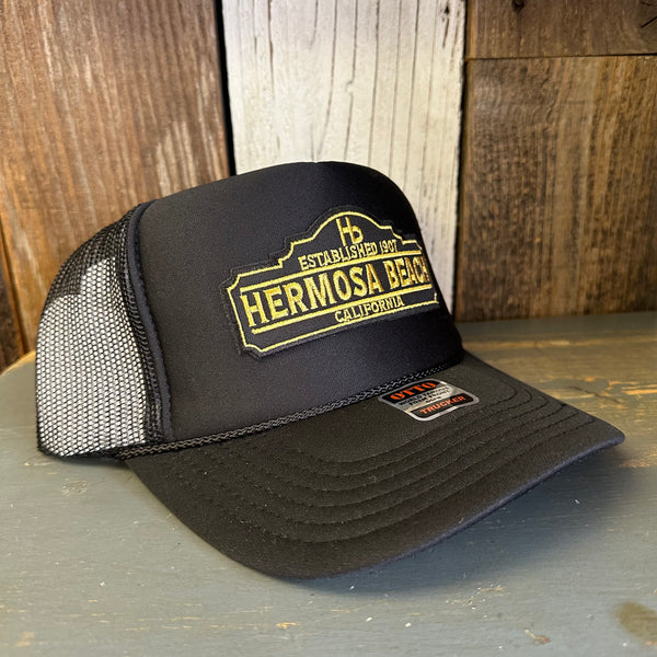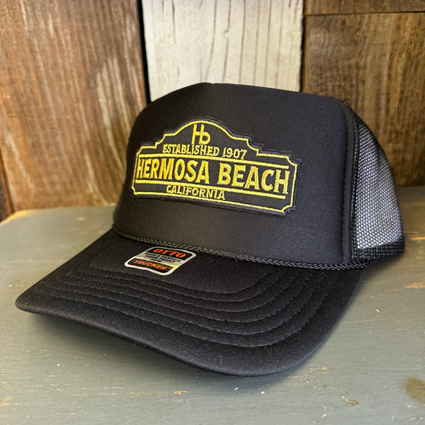 Hermosa Beach ARE YOU ESTABLISHED? High Crown Trucker Hat - Black (Curved Brim)