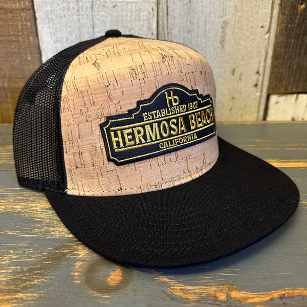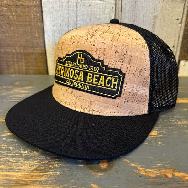 Hermosa Beach ARE YOU ESTABLISHED? Premium Cork Trucker Hat - (Black/Cork)
