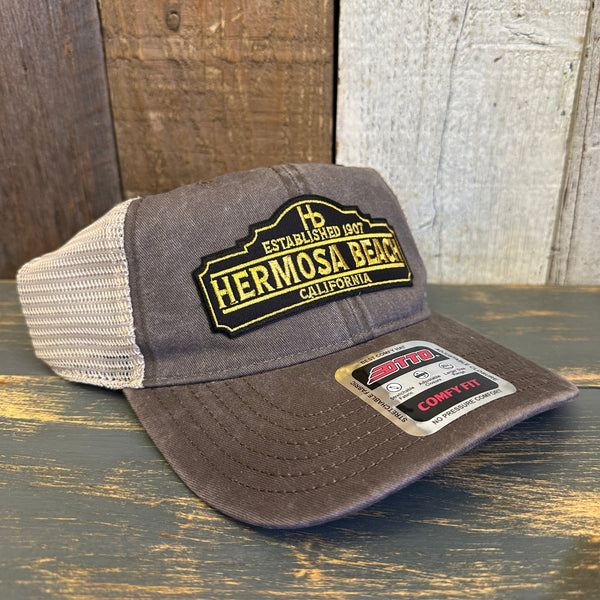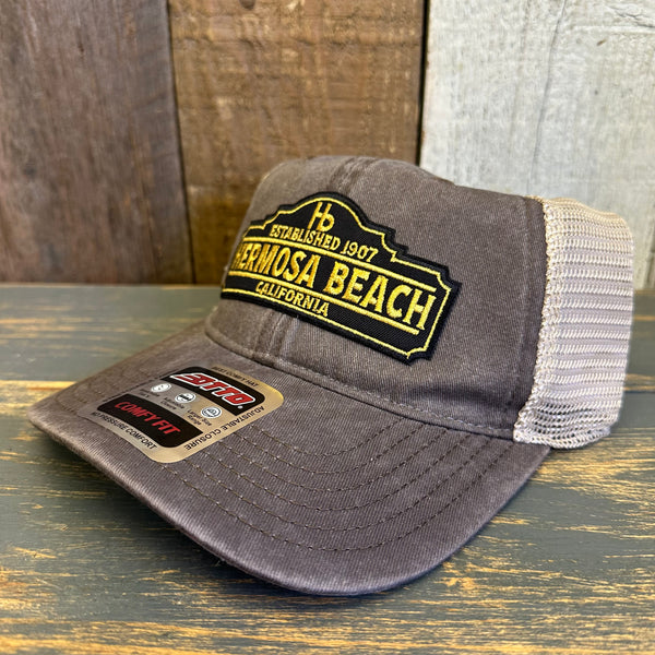 Hermosa Beach ARE YOUR ESTABLISHED? 6 Panel Low Profile "OTTO COMFY FIT" Trucker Hat - Dark Brown/Dark Brown/Khaki