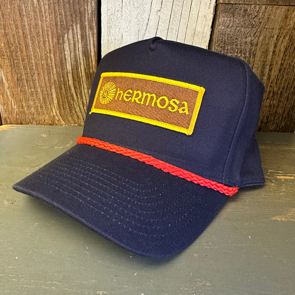 Hermosa Beach AS REAL AS THE STREETS 5 Panel Golf, Rope Cap - Navy/Red Braid (Curved Brim)