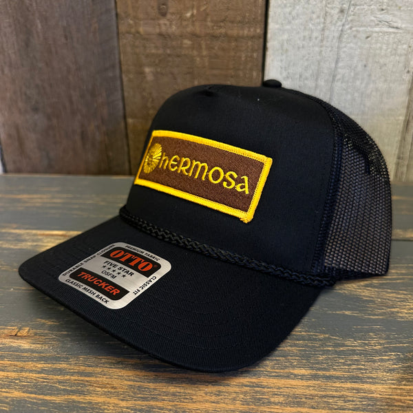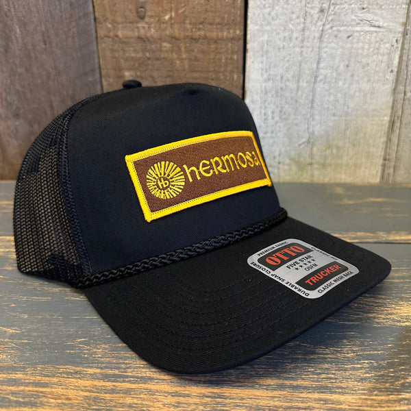 Hermosa Beach AS REAL AS THE STREETS 5 Panel Mid Profile Mesh Back Trucker Hat - Black