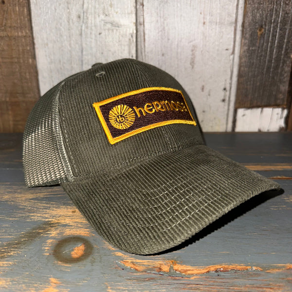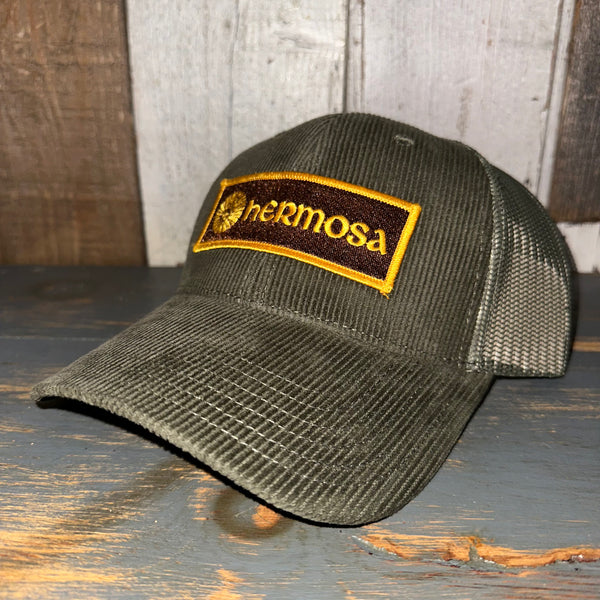 Hermosa Beach AS REAL AS THE STREETS 6 Panel Corduroy Trucker Hat - Olive
