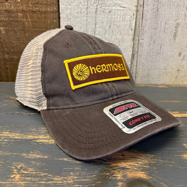 Hermosa Beach AS REAL AS THE STREETS 6 Panel Low Profile "OTTO COMFY FIT" Trucker Hat - Dark Brown/Dark Brown/Khaki