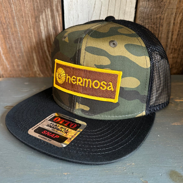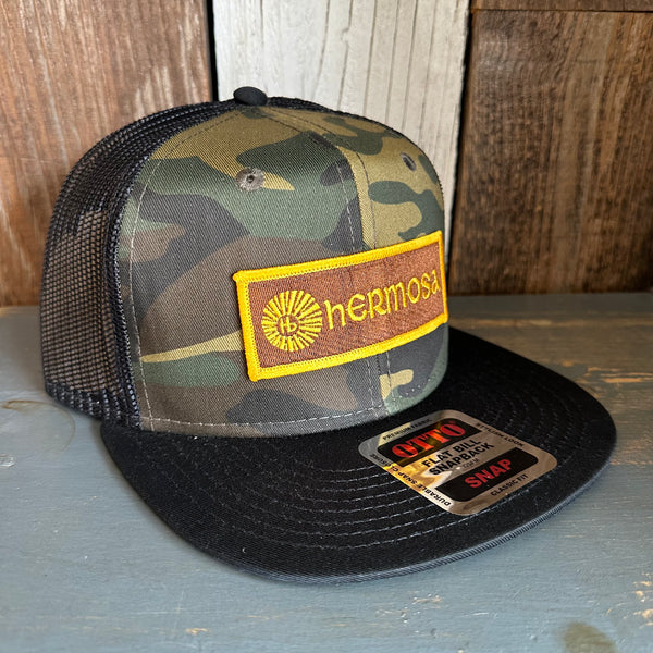 Hermosa Beach AS REAL AS THE STREETS Camouflage 6 Panel Mid Profile Mesh Back Snapback Trucker Hat - Dark Green/Brown/Black
