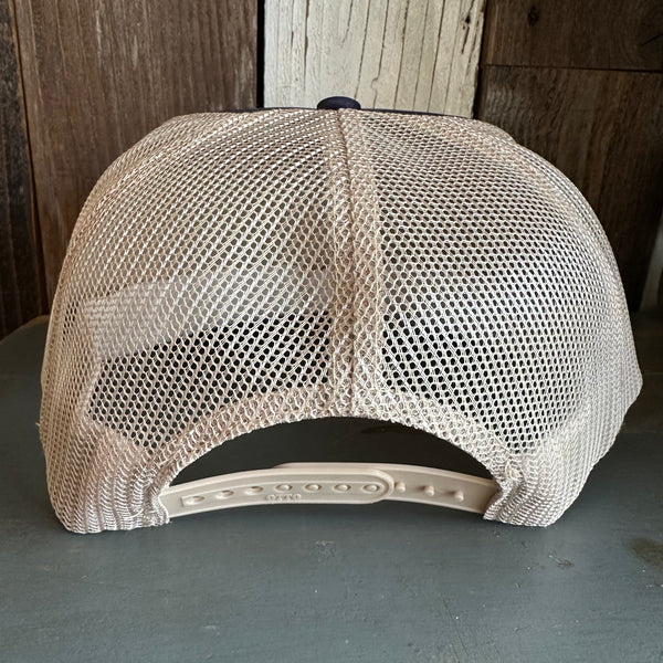 Hermosa Beach AS REAL AS THE STREETS High Crown Trucker Hat - Navy Blue/Khaki