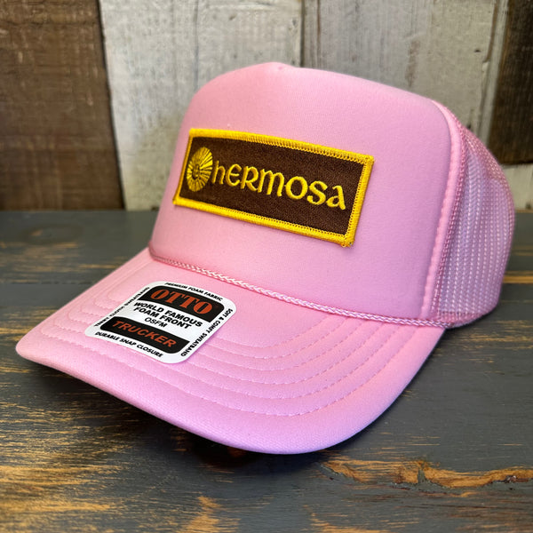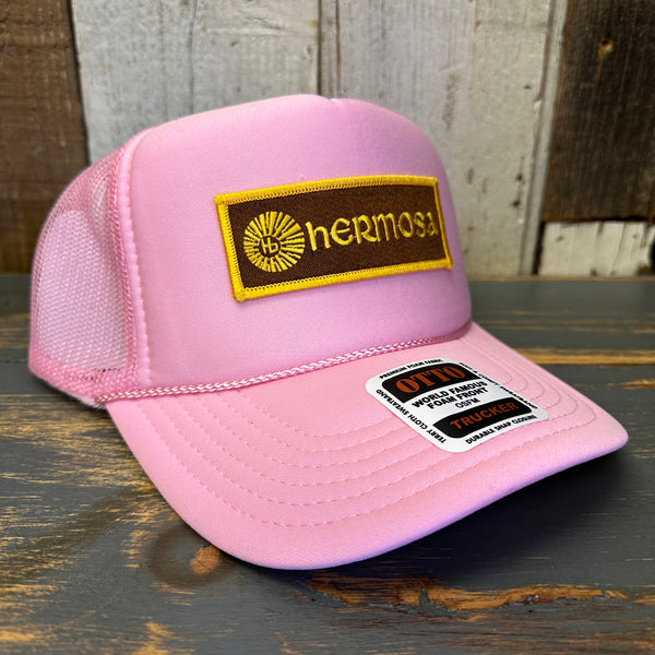 Hermosa Beach AS REAL AS THE STREETS High Crown Trucker Hat - Pink