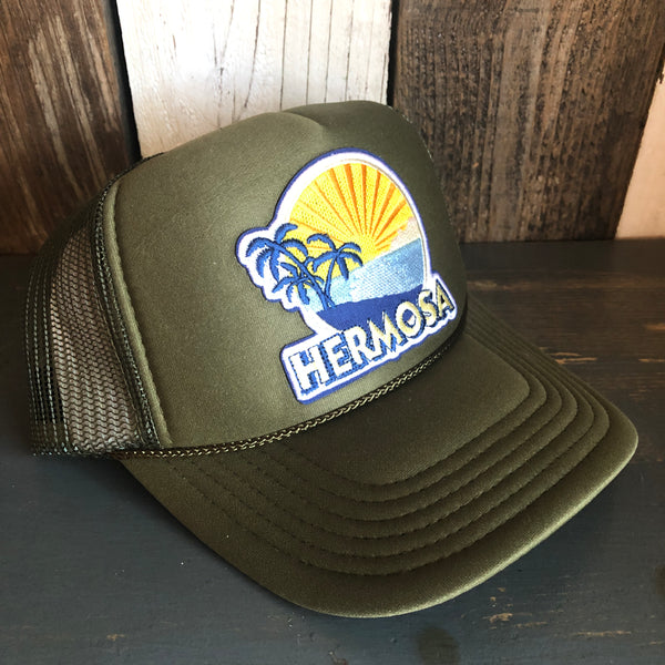 Hermosa Beach FIESTA High Crown Trucker Hat - Olive