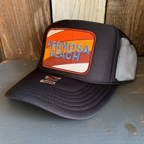 Hermosa Beach GOLF CARTS & YOGA PANTS High Crown Trucker Hat - Black (Curved Brim)