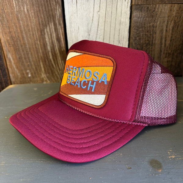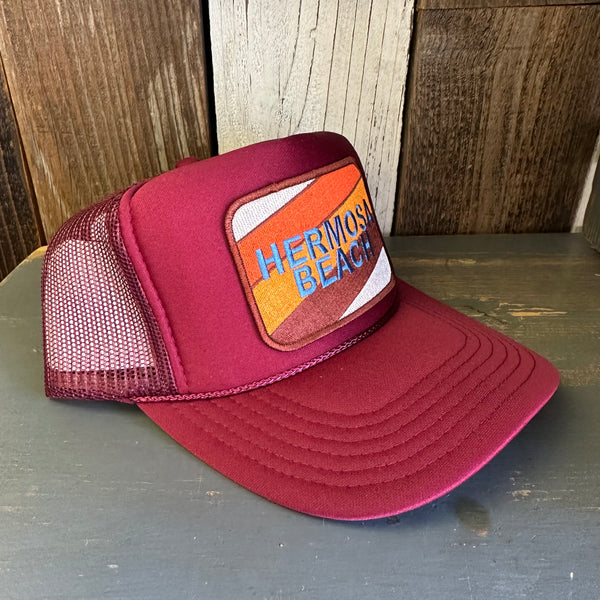 Hermosa Beach GOLF CARTS & YOGA PANTS High Crown Trucker Hat - Burgundy Maroon