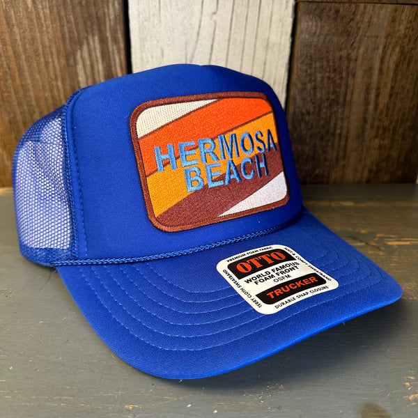 Hermosa Beach GOLF CARTS & YOGA PANTS High Crown Trucker Hat - Royal Blue (Curved Brim)