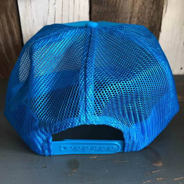 Hermosa Beach GOLF CARTS & YOGA PANTS Trucker Hat - Neon Blue