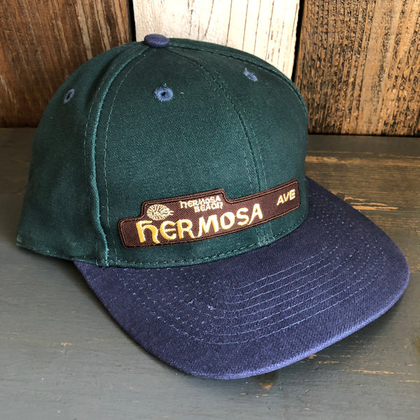 Hermosa Beach HERMOSA AVE - 6 Panel Low Profile Baseball Cap with Adjustable Strap with Press Buckle - Dark Green/Navy