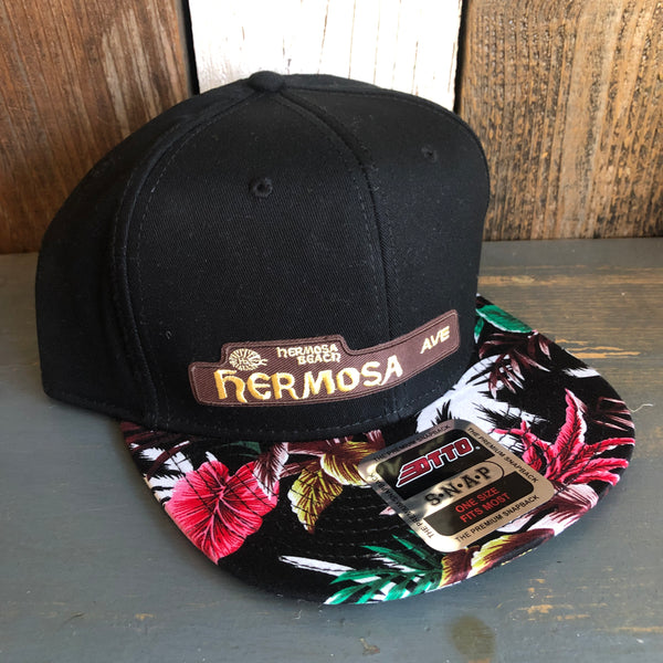 Hermosa Beach HERMOSA AVE Black Panel/Hawaiian Pattern Visor - 6 Panel Mid Profile Snapback Hat - Makai