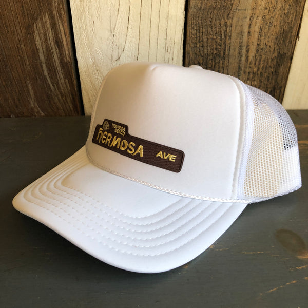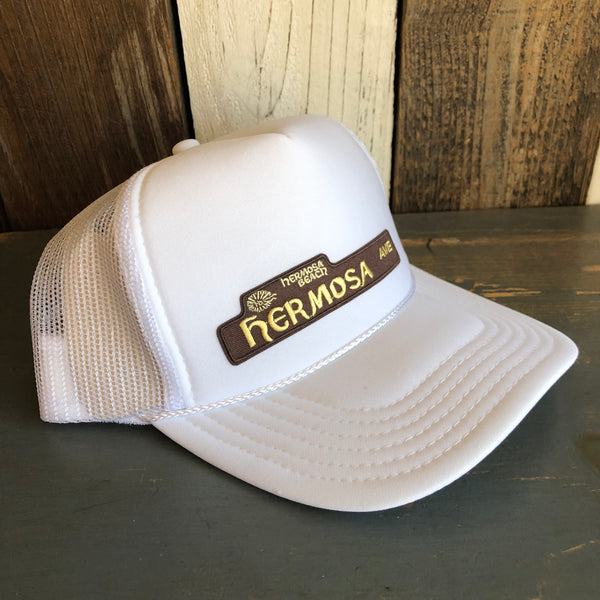 Hermosa Beach HERMOSA AVE Mid Crown Trucker Hat - White