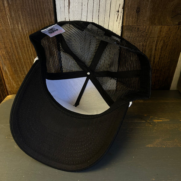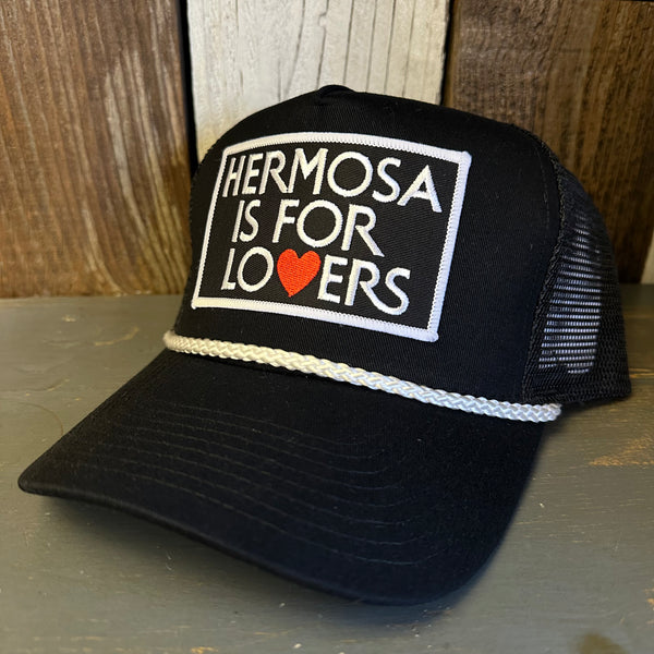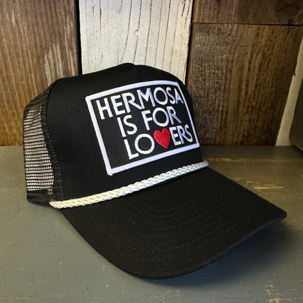 Hermosa Beach HERMOSA IS FOR LOVERS 5 panel Rope Trucker Cap - Black/White Braid (Curved Brim)