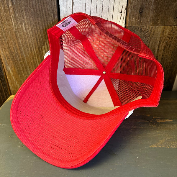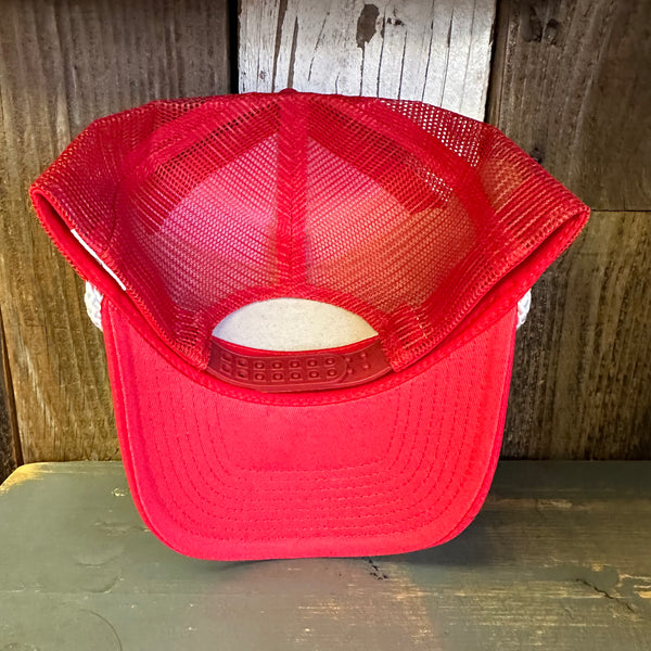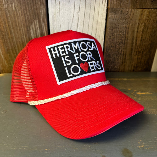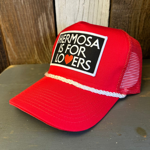 Hermosa Beach HERMOSA IS FOR LOVERS 5 panel Rope Trucker Cap - Red/White Braid (Curved Brim)