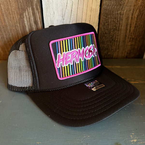 Hermosa Beach HERMOSA'84 High Crown Trucker Hat - Black (Curved Brim)