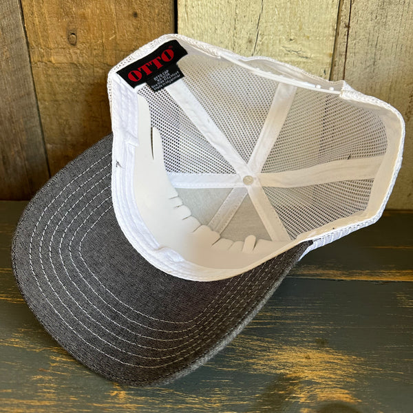 Hermosa Beach HIGH HEAT 6 Panel Low Profile Mesh Back Trucker Hat - Faded Black/White