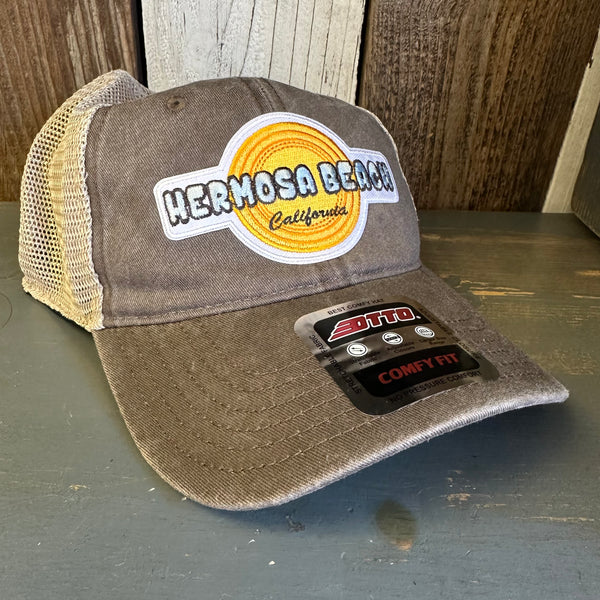 Hermosa Beach HIGH HEAT 6 Panel Low Profile "OTTO COMFY FIT" Trucker Hat - Dark Brown/Khaki