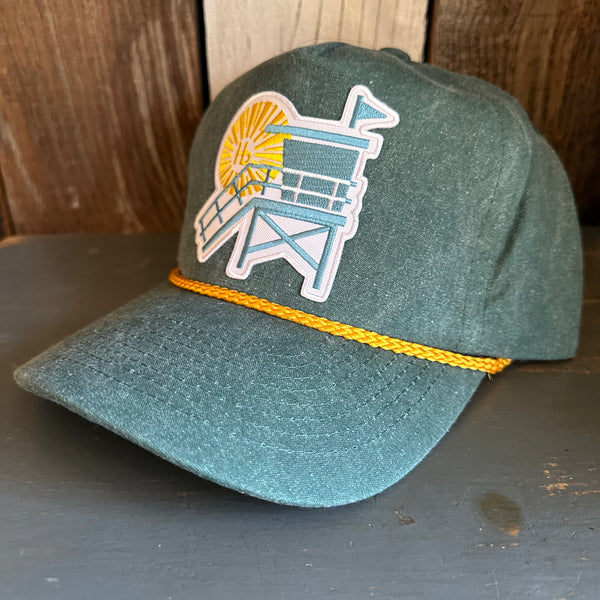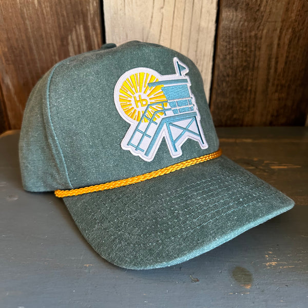 Hermosa Beach LIFEGUARD TOWER :: 5 panel Stone Washed Canvas 2-Tone - Moss/Gold Braid