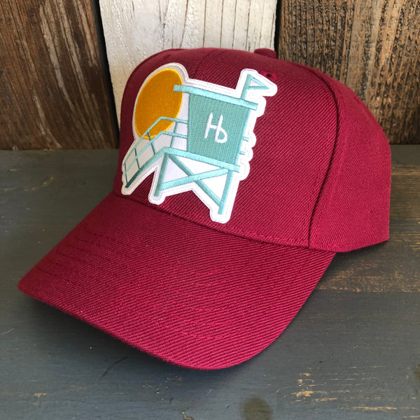 Hermosa Beach LIFEGUARD TOWER 6 Panel Mid Profile Baseball Cap - Maroon
