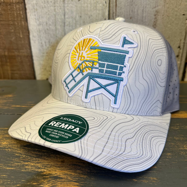 Hermosa Beach LIFEGUARD TOWER Mid-Pro Adjustable Cap - White Grey Topo