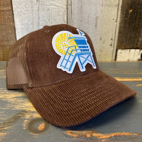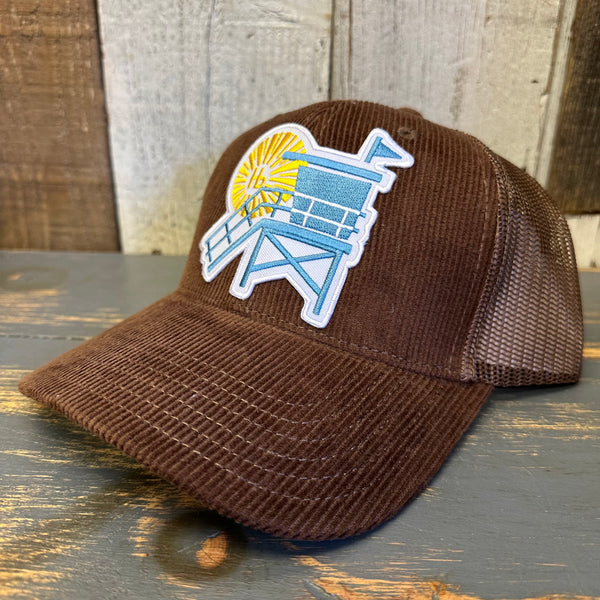 Hermosa Beach LIFEGUARD TOWER :: NORTH OF PIER 6 Panel Corduroy Trucker Hat - Brown