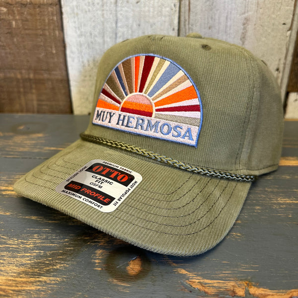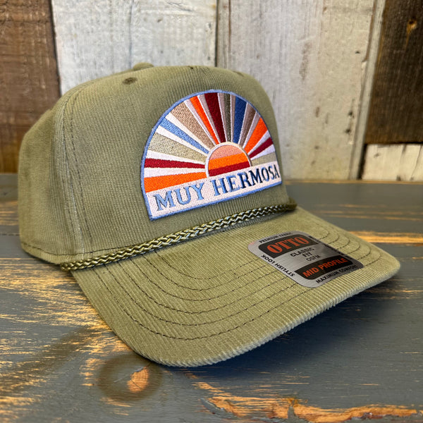 Hermosa Beach MUY HERMOSA 5 Panel Mid Profile Corduroy Baseball Cap - Olive Green