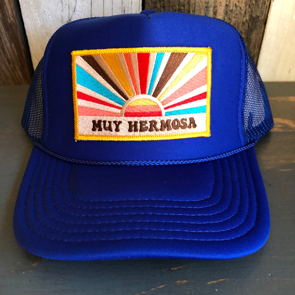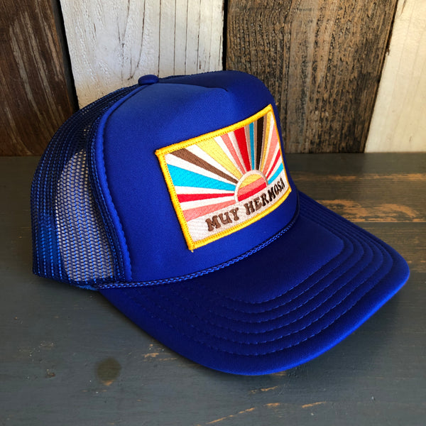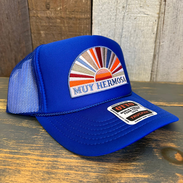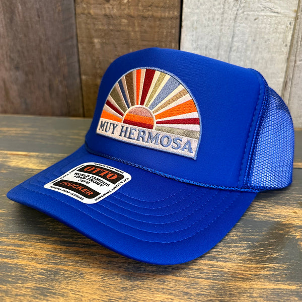 Hermosa Beach MUY HERMOSA High Crown Trucker Hat - Royal Blue (Curved Brim)