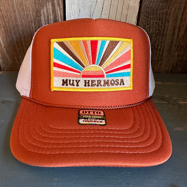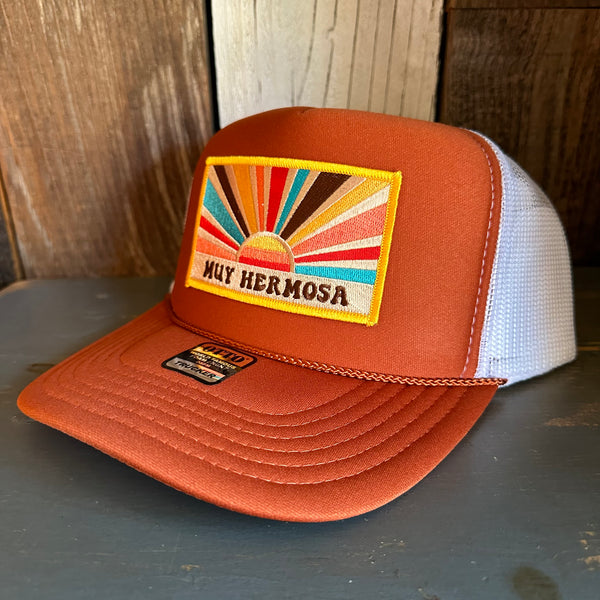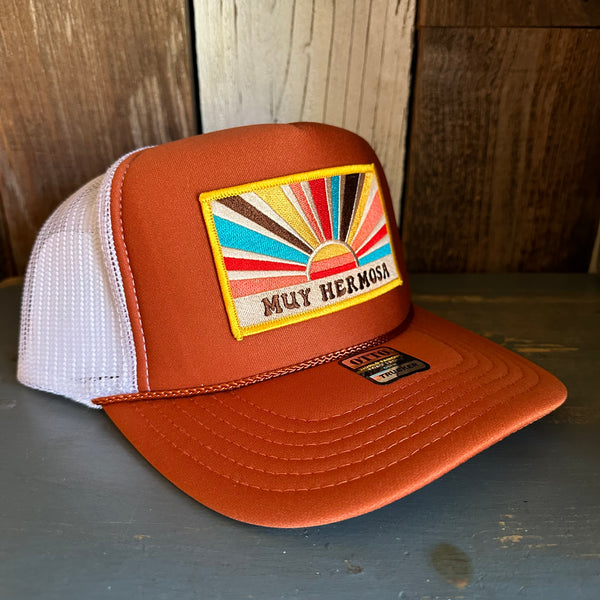 Hermosa Beach MUY HERMOSA High Crown Trucker Hat - Texas Orange/White