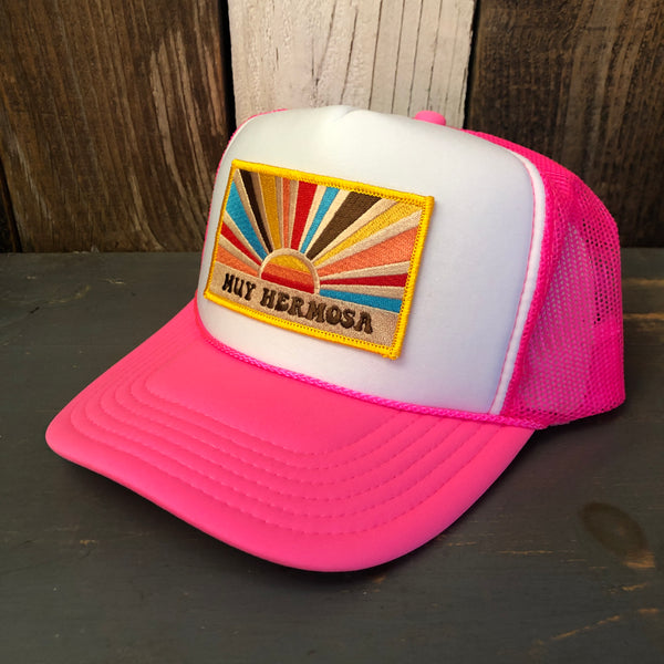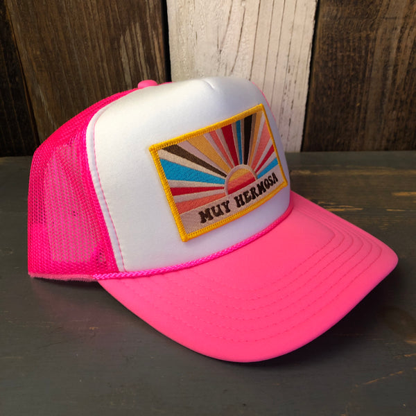Hermosa Beach MUY HERMOSA Trucker Hat - White/Neon Pink