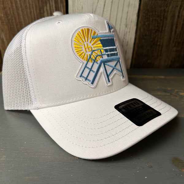 Hermosa Beach NORTH OF PIER - 5 Panel Mid Profile Mesh Back Trucker Hat - White