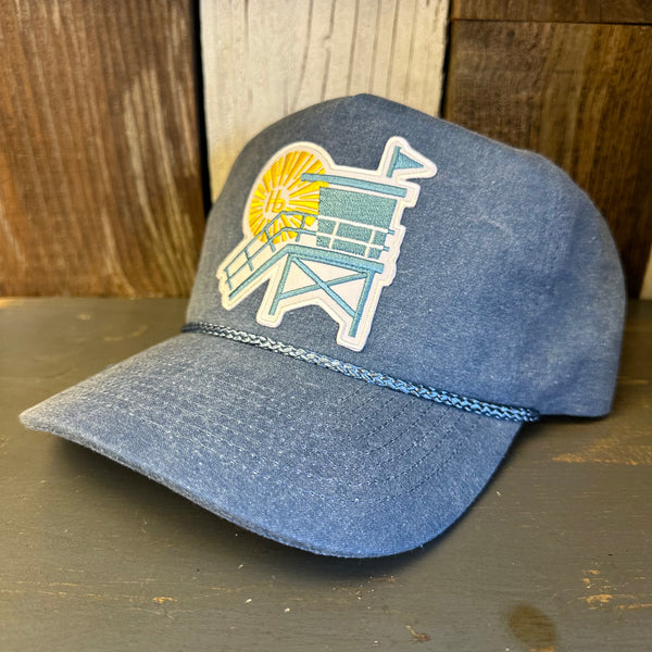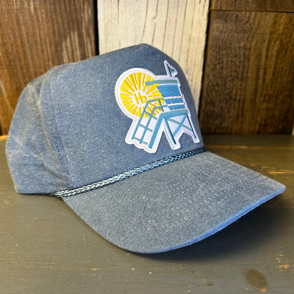 Hermosa Beach CHILL THE 4th OUT! 5 panel Stone Washed Canvas 2-Tone - Sky/White Braid