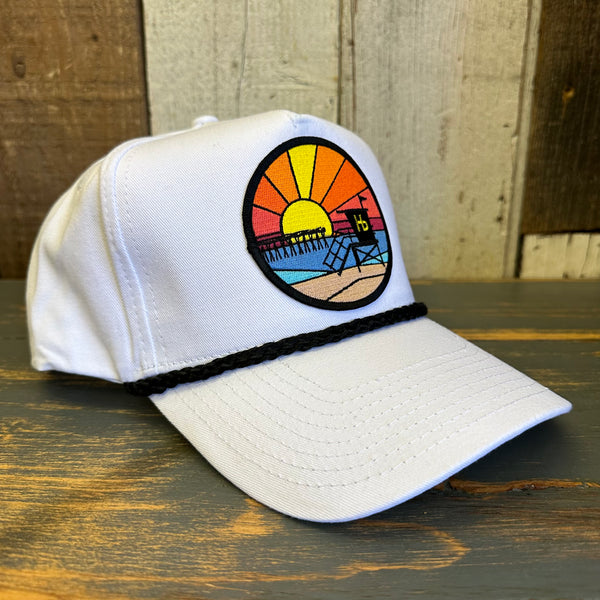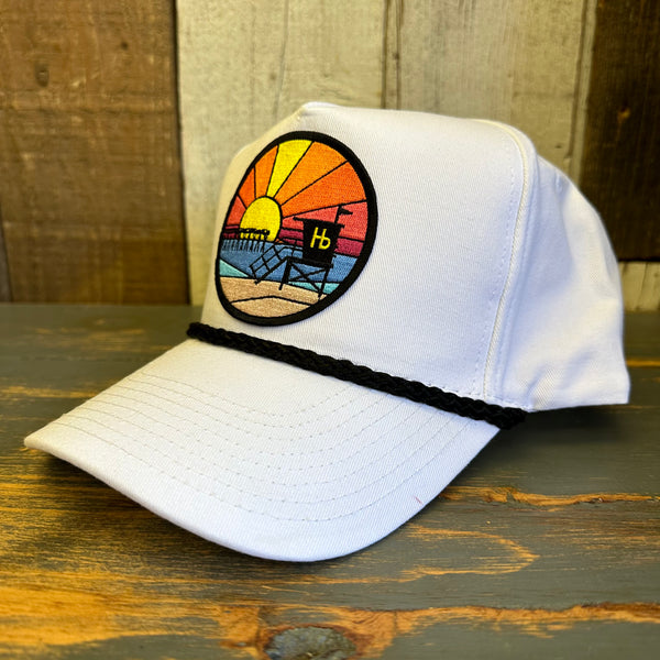 Hermosa Beach OBLIGATORY SUNSET 5 Panel Golf, Rope caps - White/Black Braid (Curved Brim)