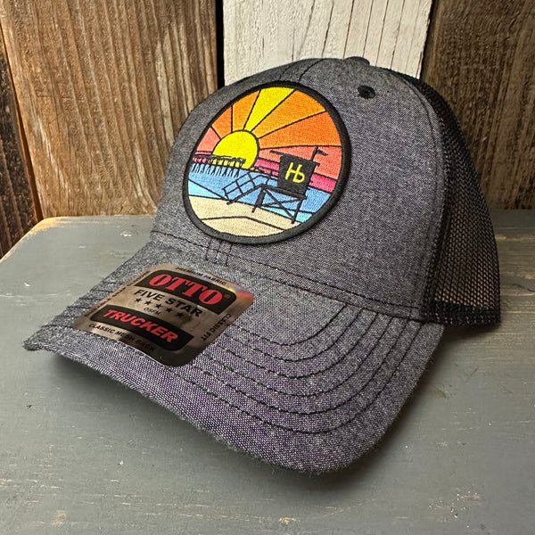 Hermosa Beach OBLIGATORY SUNSET 6 Panel Low Profile Mesh Back Trucker Hat - Charcoal/Black
