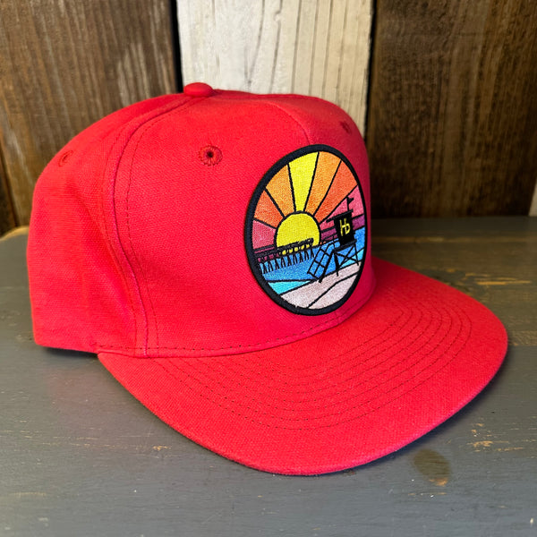 Hermosa Beach OBLIGATORY SUNSET - 6 Panel Mid Profile Baseball Cap - Red