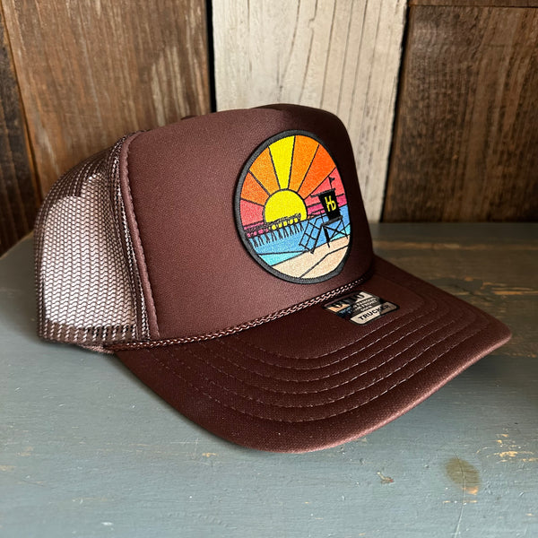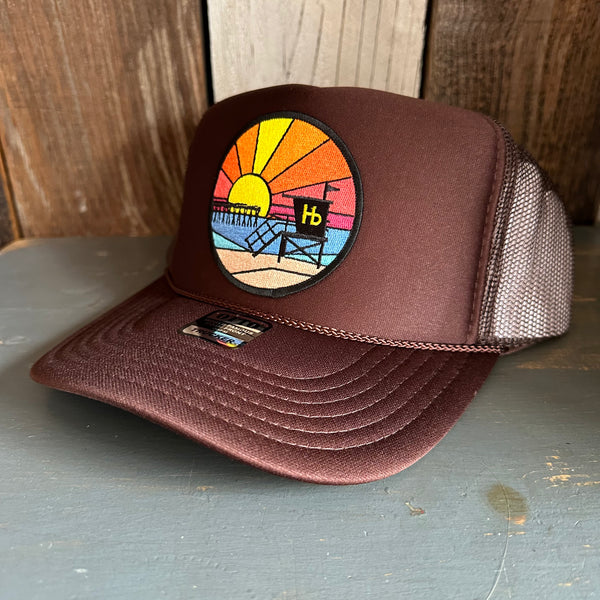 Hermosa Beach OBLIGATORY SUNSET High Crown Trucker Hat - Brown