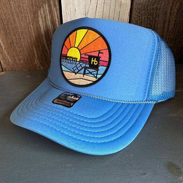 Hermosa Beach OBLIGATORY SUNSET High Crown Trucker Hat - Col. Blue