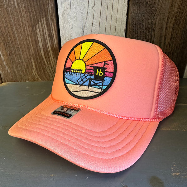Hermosa Beach OBLIGATORY SUNSET High Crown Trucker Hat - Coral
