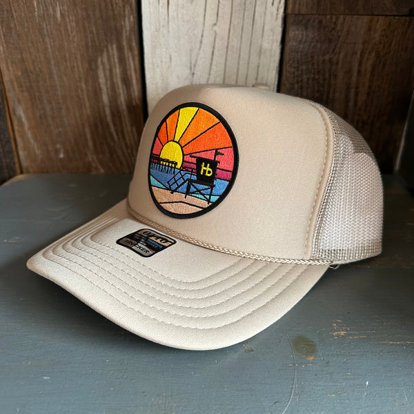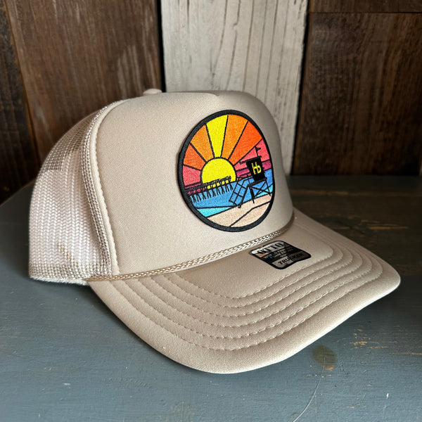 Hermosa Beach OBLIGATORY SUNSET High Crown Trucker Hat - Khaki