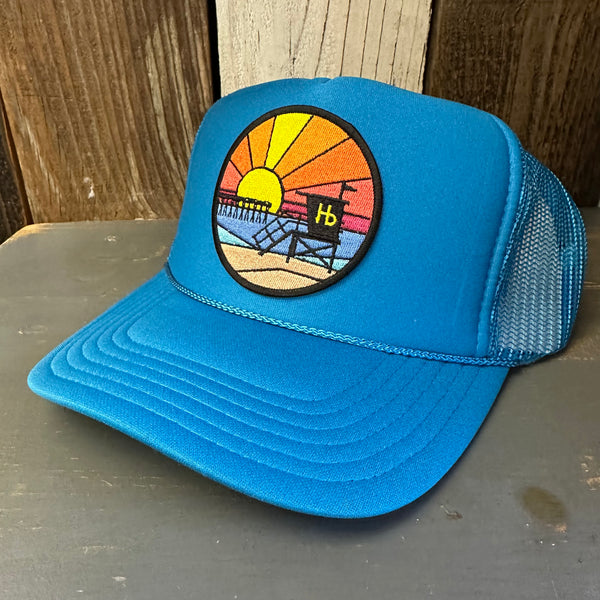 Hermosa Beach OBLIGATORY SUNSET High Crown Trucker Hat - Turquoise Blue