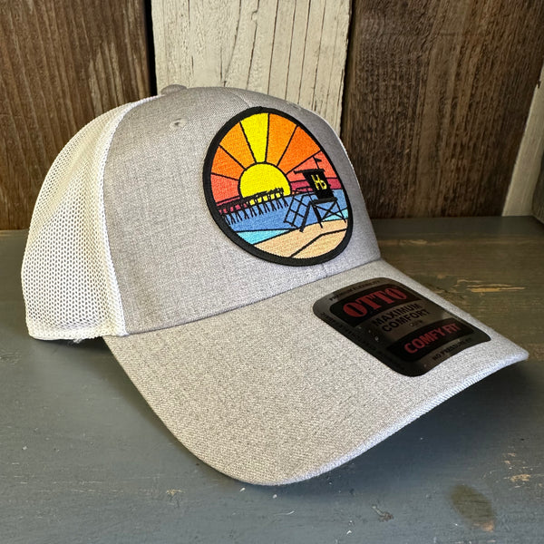 Hermosa Beach OBLIGATORY SUNSET "OTTO COMFY FIT" 6 Panel Low Profile Mesh Baseball Cap - Heather Grey/White